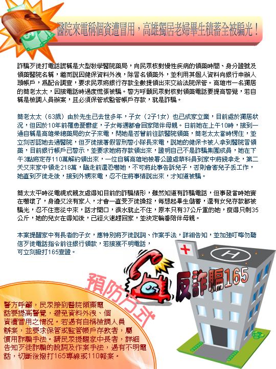 醫院來電稱個資遭冒用,高雄獨居老婦畢生積蓄全被騙光!