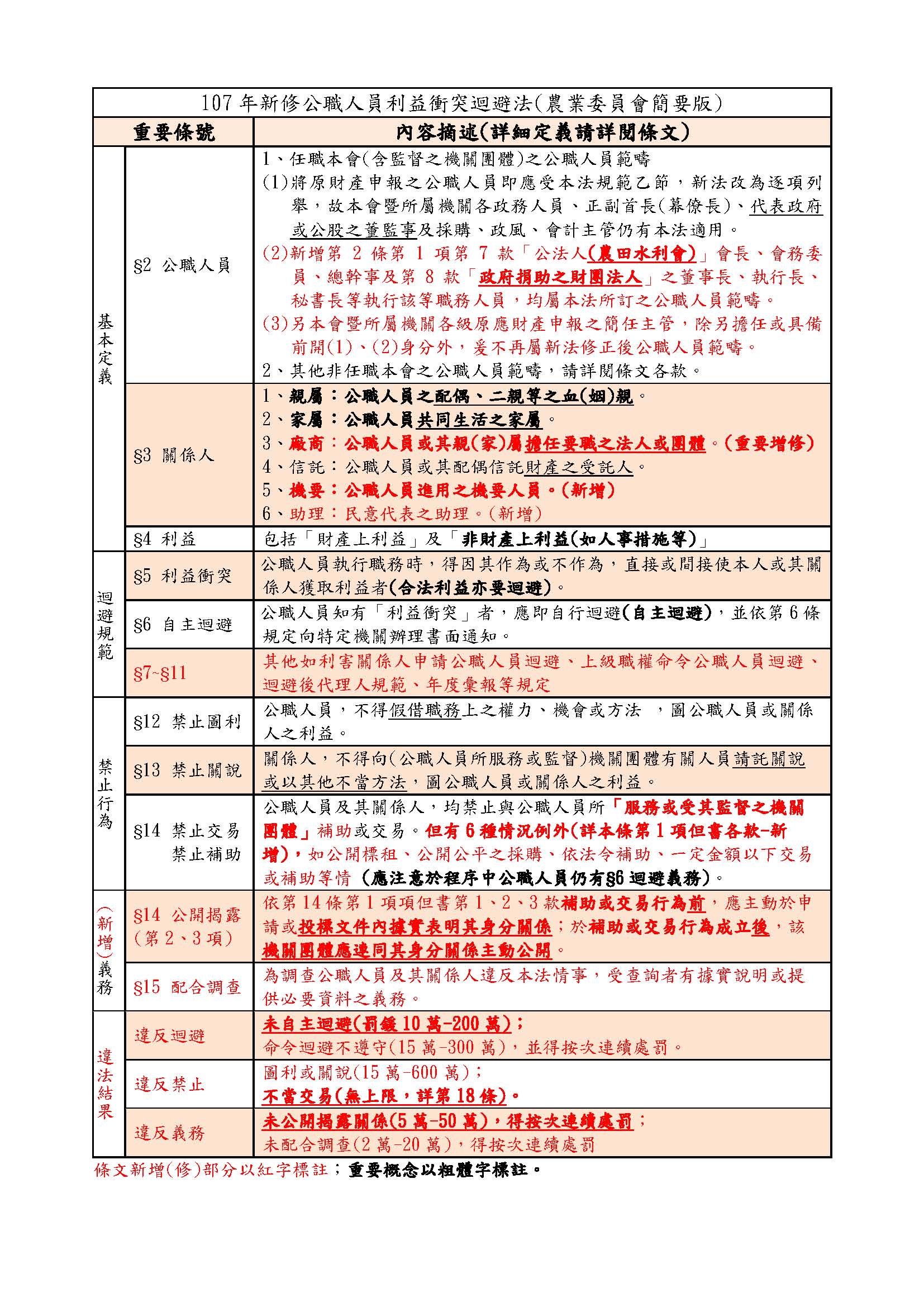1. 歡迎下載宣導資料: (1) 農業部編訂「107年新修公職人員利益衝突迴避法(農業部簡要版)」 (2)「公職人員利益衝突迴避法修正簡介」摺頁 (3)「1分鐘看懂公職人員利益衝突迴避法」 (4)「公職人員利益衝突迴避法新法問答集」 2. 亦可至法務部廉政署公職人員利益衝突迴避法宣導專區連結瀏覽或下載相關資料。 (1)法務部廉政署網站/防貪業務專區/利益衝突/業務宣導項下。 (2)利用網址:https://www.aac.moj.gov.tw/lp.asp?ctNode=36741&CtUnit=10973&BaseDSD=7&mp=289