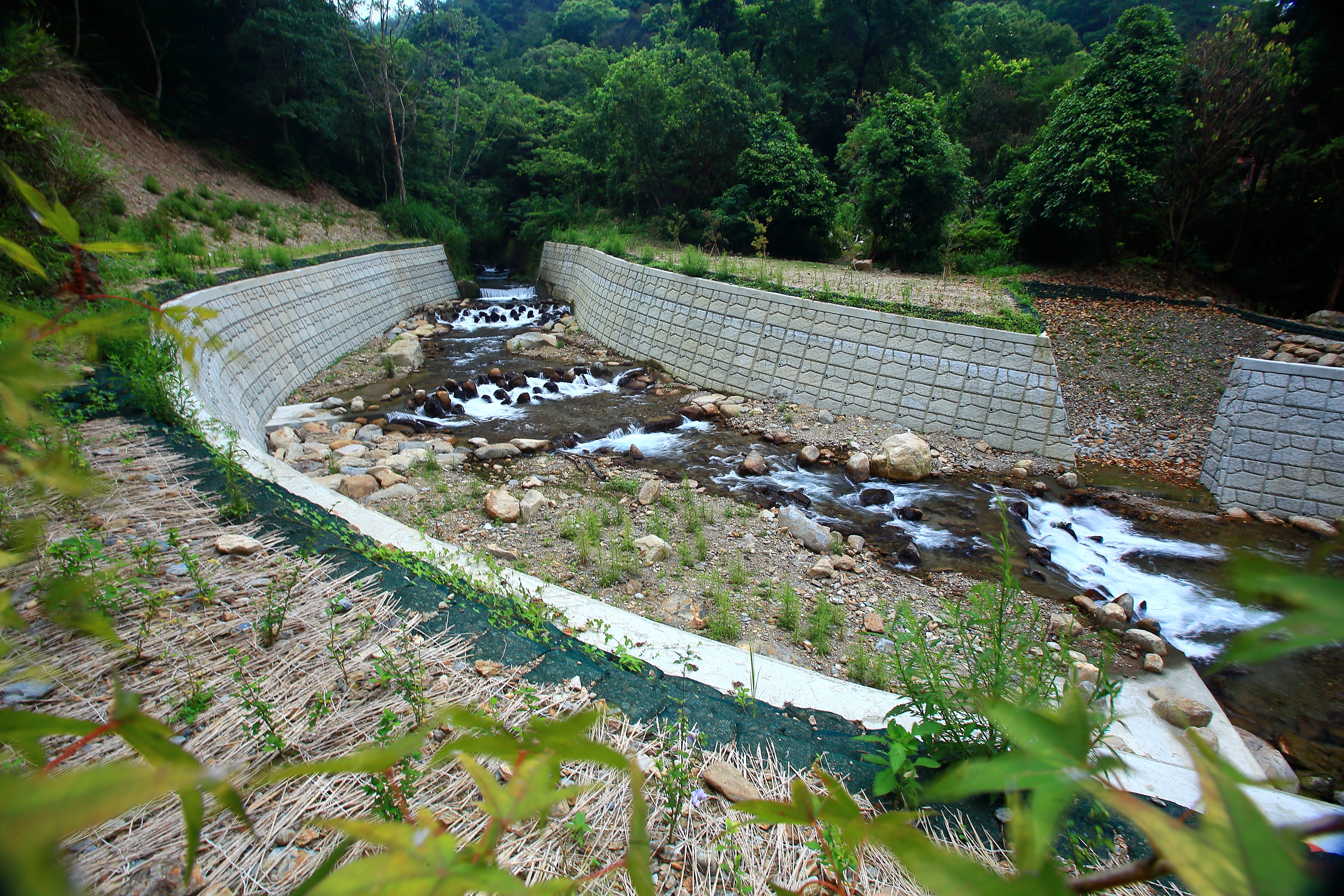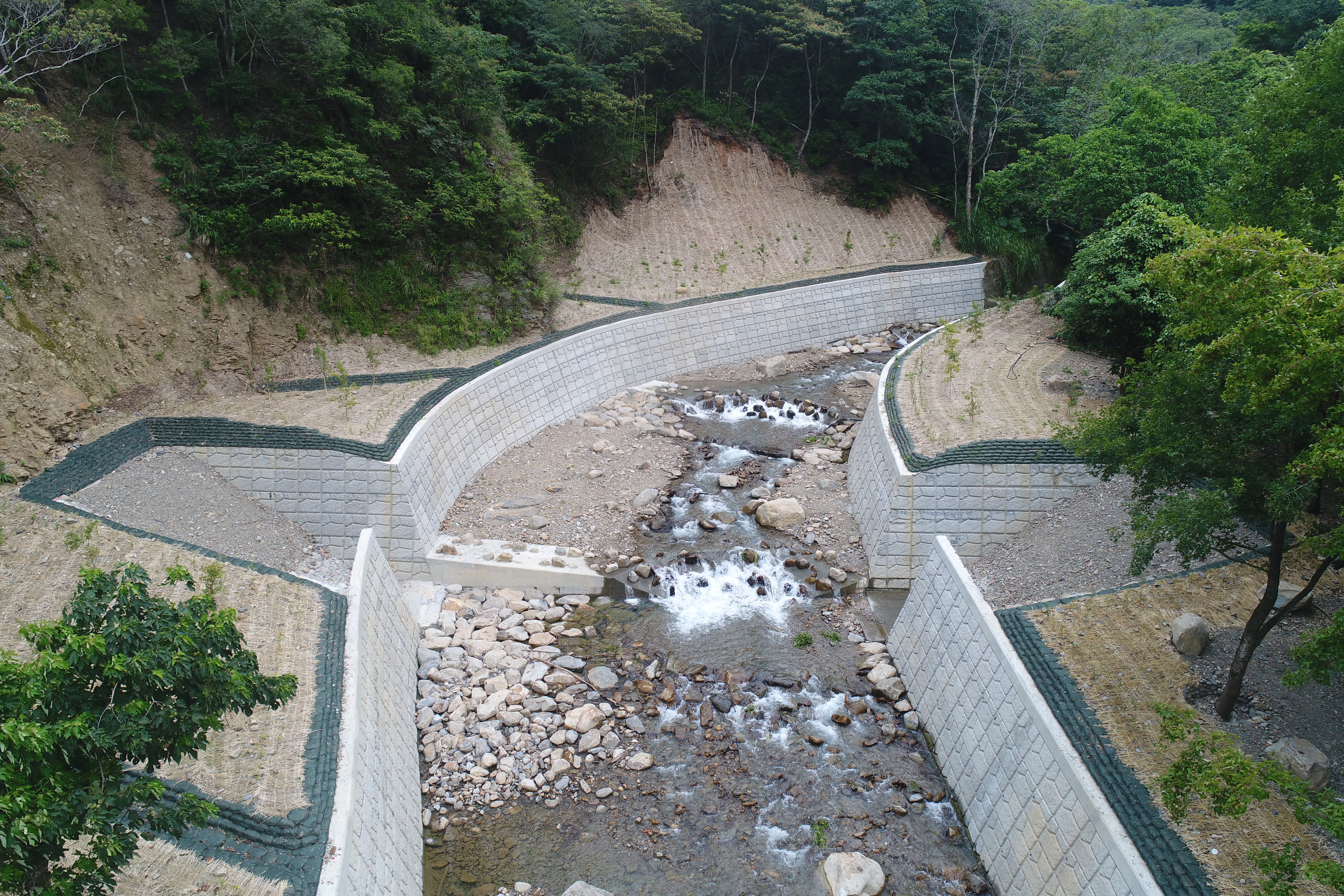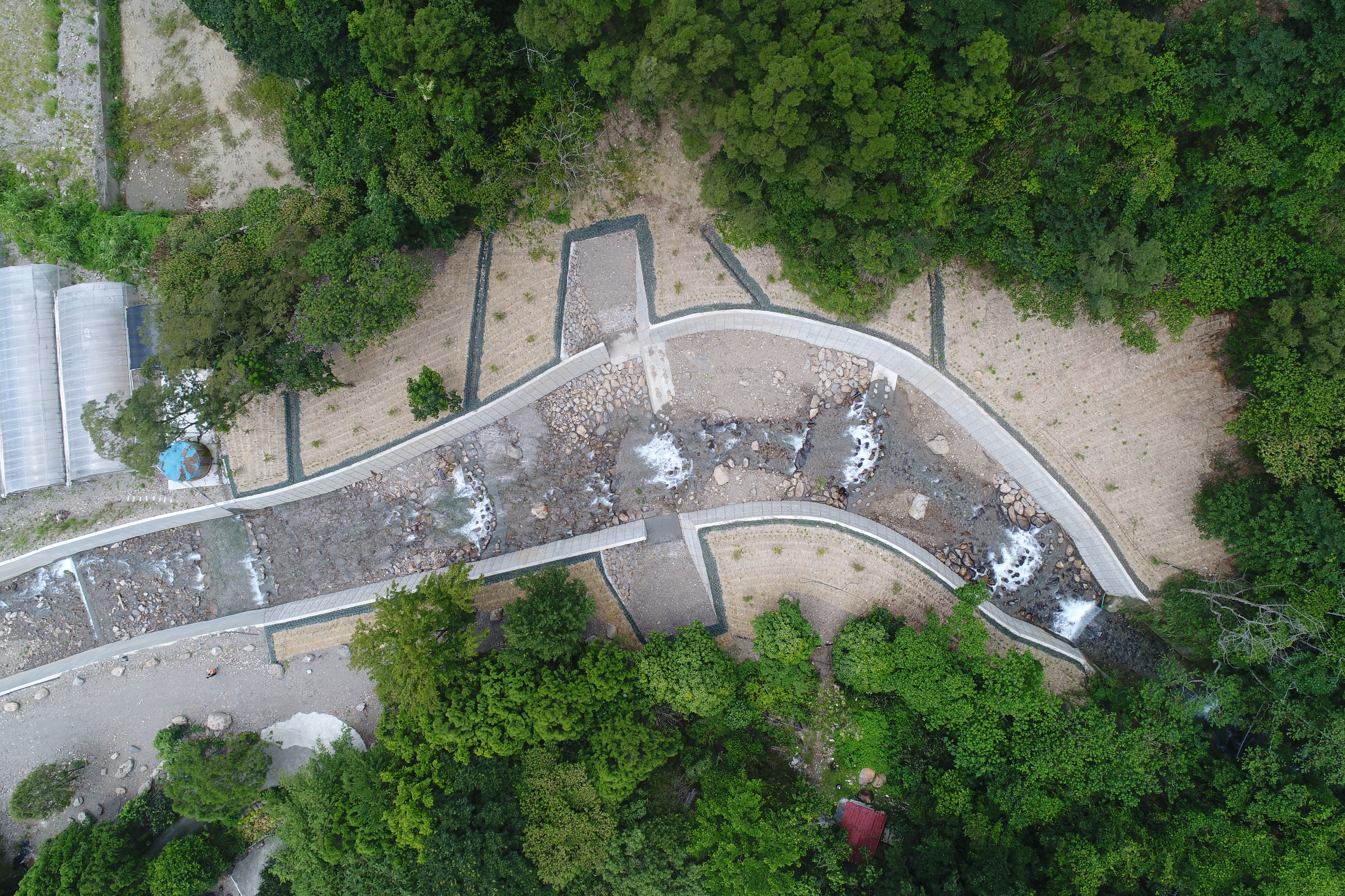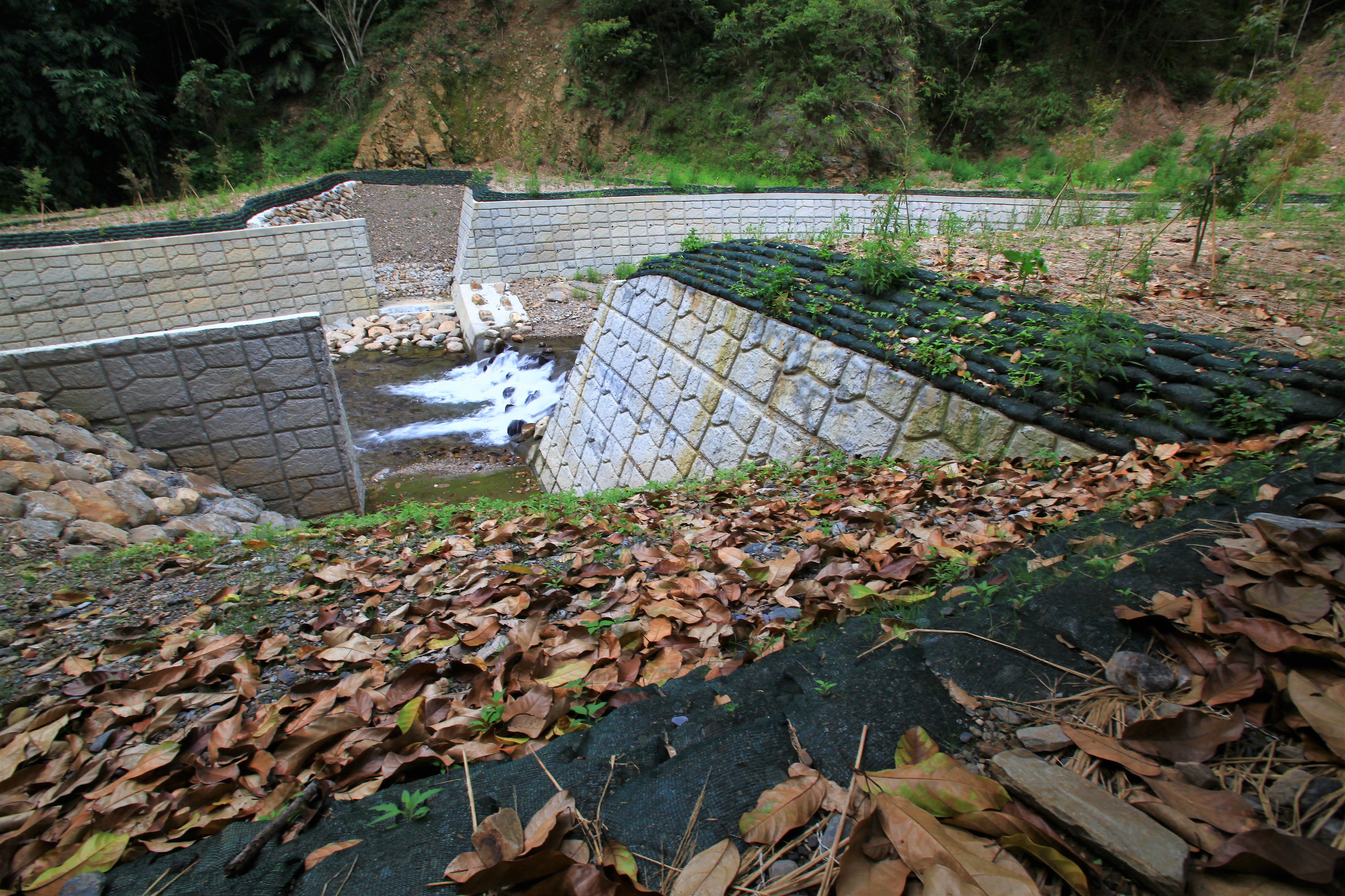 主辦單位 農業部林業及自然保育署南投分署 監造單位 農業部林業及自然保育署南投分署 施工單位 宇正營造有限公司 工程地點 位於南投縣埔里鎮埔里事業區109林班。 工程緣起 本案因106年6月2日豪雨造成本分署109林班上游坡地崩塌,洪水沖毀既有護岸,土砂堆積河道造成災情,基於整體治理原則聯合地方政府進行災害整治,林班範圍由林業保育署治理,下游由地方政府延續整治。 工法簡介 本工程為徹底解決災因,由本分署挑戰自辦測量及設計工作,打開瓶頸段,固床工軸向配合流心設計,控制流心平順,河道轉彎段配合地形擴大斷面並營造高灘地,固床工低矮化並創新設計圓弧曲面,創造無高差斜坡,河道保留現地大塊石,固床工下游設置抛石水潭,營造生物多樣化的棲息環境;考量動物上下溪床之需求,創新設計符合動物通行之自然斜坡式橫向動物通道,使通道更為自然合諧;另本工程落實生態檢核作業,除確保安全外亦同時考量當地生態環境特色給予必要設計,整體而周延的全面性考量。 得獎事蹟 107年度優良農業建設工程獎-治山防災類-優等獎