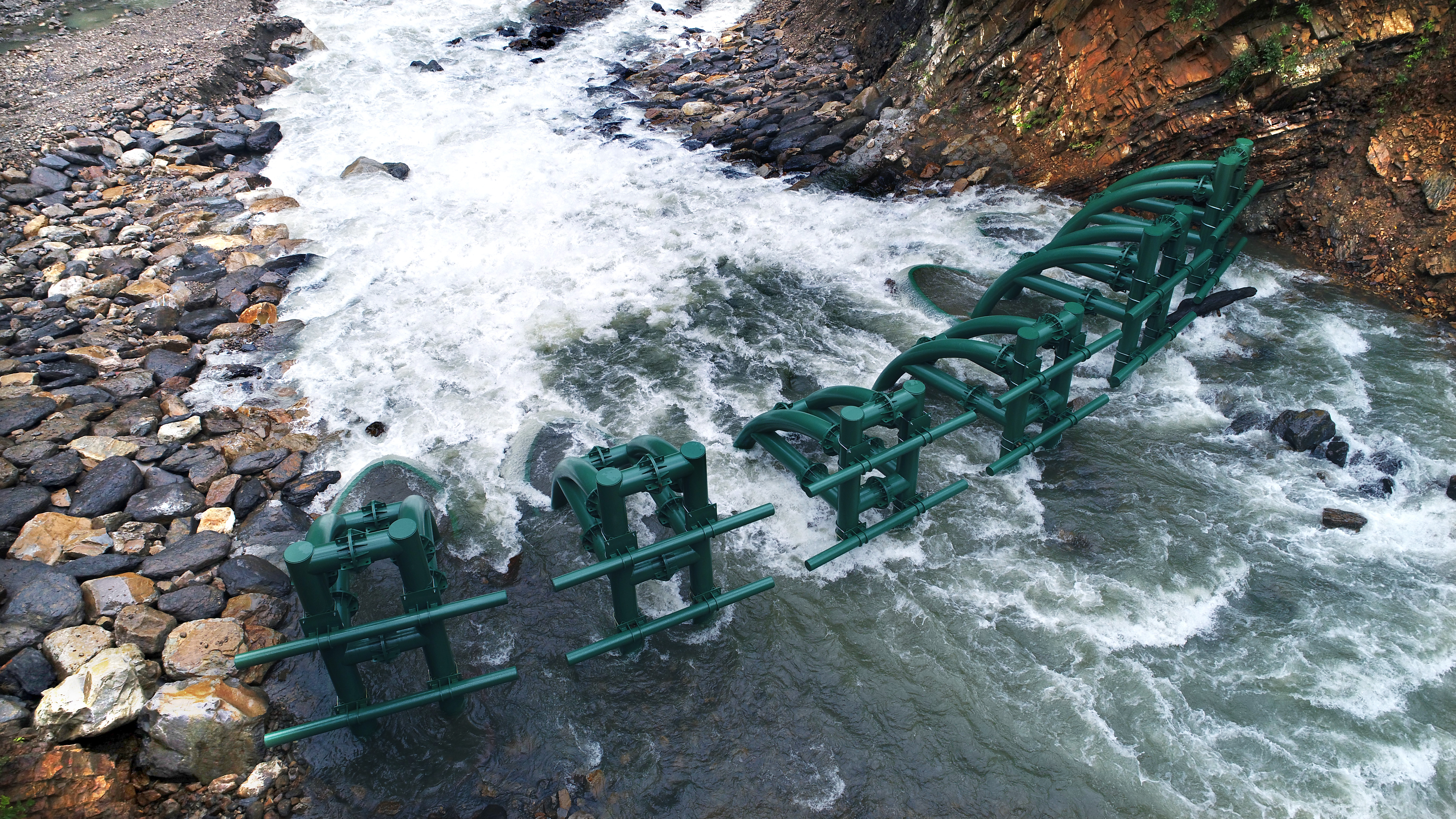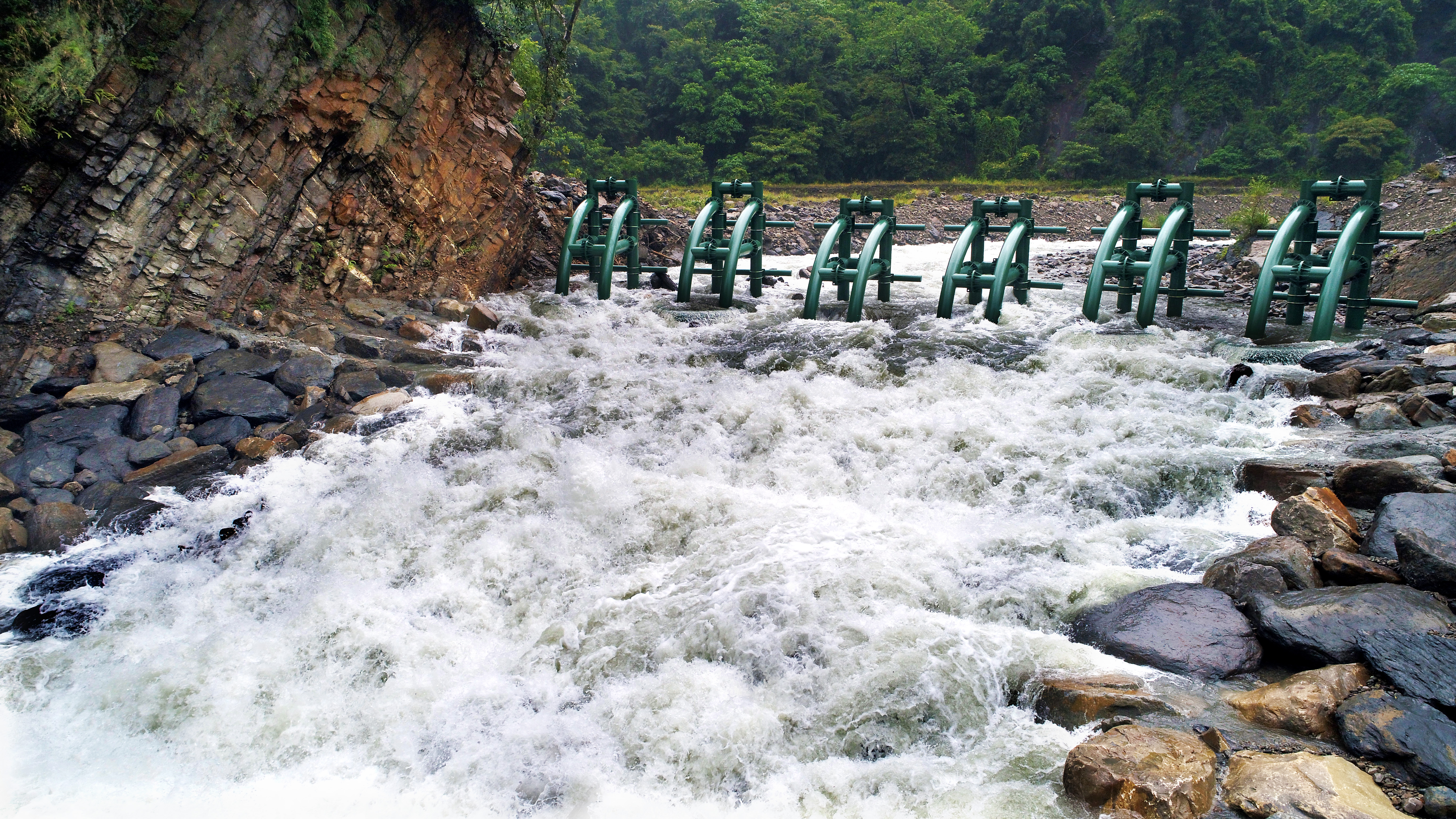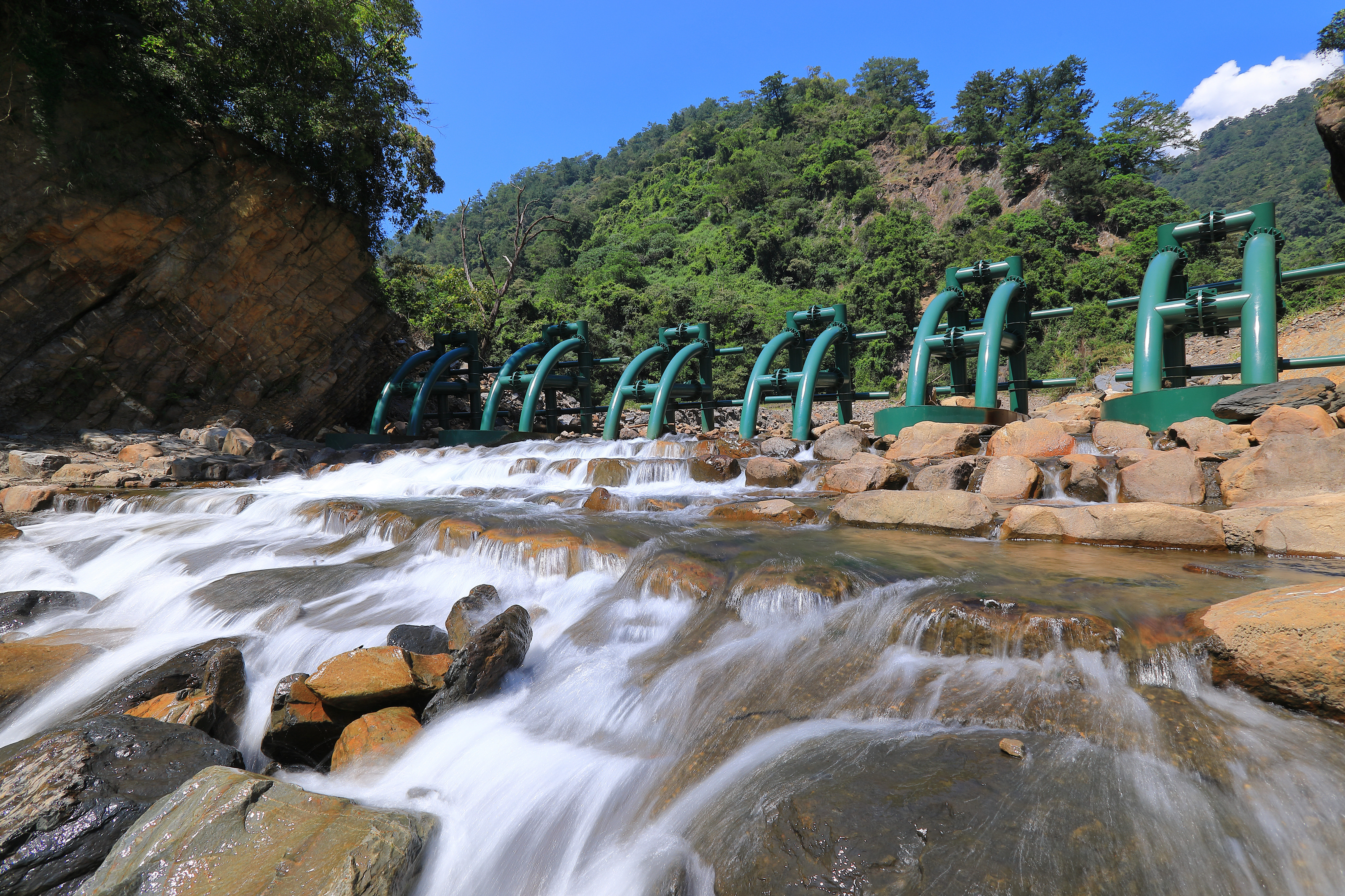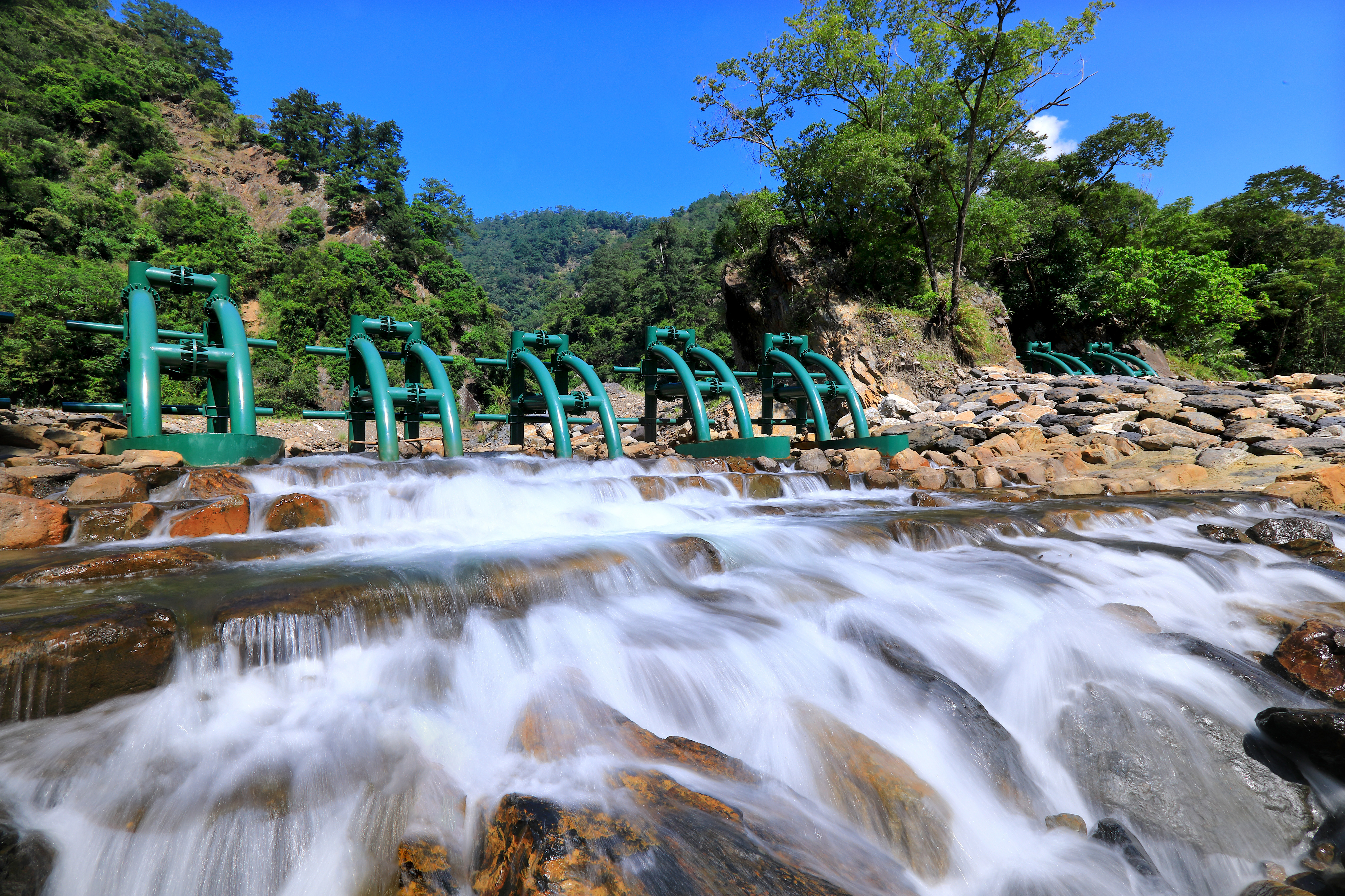 河道及庫容區清疏整理、鋼構壩(主流口+支流口) 共8單元、塊石護岸(含基樁保護工)長104公尺、塊石堆疊 208平方公尺、塊石護坦110平方公尺。 |