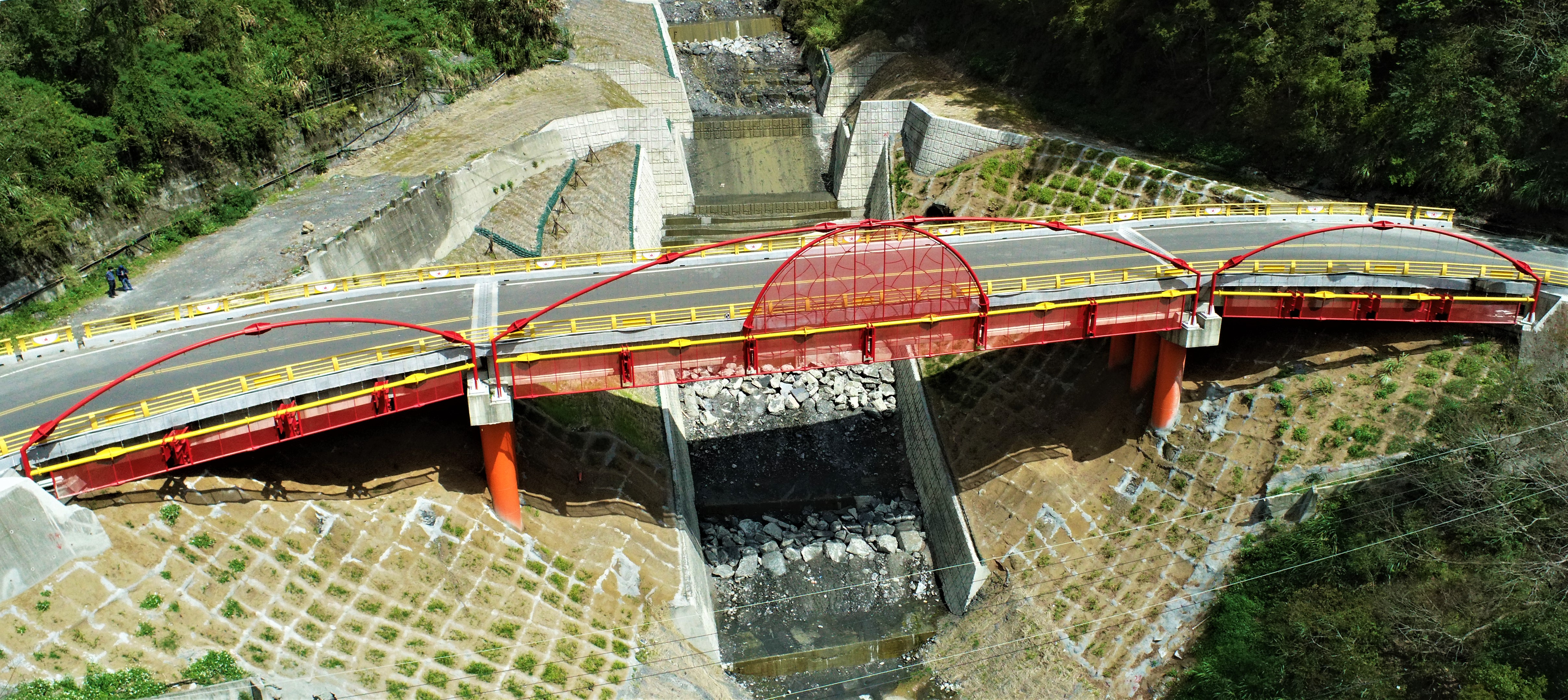 主辦單位:農業部林業保育署南投分署 設計單位:震懋工程技術顧問有限公司 監造單位:震懋工程技術顧問有限公司 承攬廠商:茗翔營造有限公司 工程內容:新建橋梁一座。 AC鋪設,總面積約4581.4m2。 橋梁造型意象74.52m。 橋面欄杆140m。 得獎事蹟:110年度優良農建工程獎-優等
