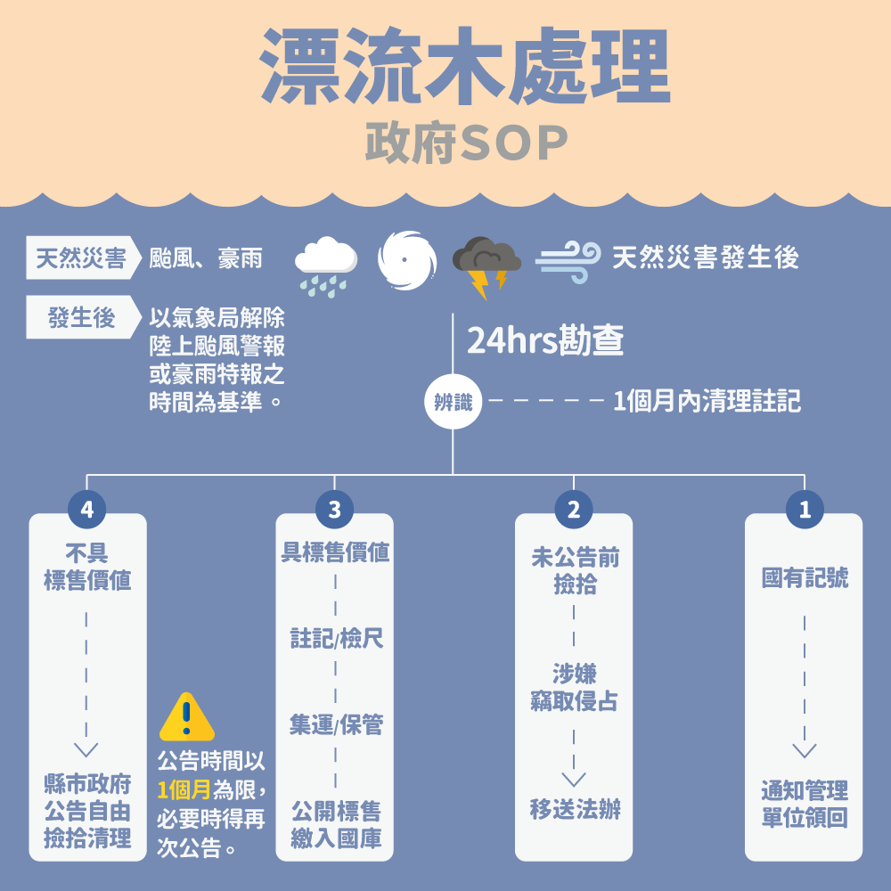 颱風白鹿即將來襲,南投林區管理處提醒民眾颱風過後,切勿任意撿拾漂流木,以免觸犯森林法。 南投林管處表示,台灣地勢陡峭、水流湍急、地質年輕、地震頻繁,加上因颱風、豪雨帶來之瞬間高降雨量,極易造成山區林地土石崩塌,林木遭受沖刷至河川、水庫、海岸等地區產生漂流木。颱風警報一經解除後,林管處即與縣政府人員就主要河川之漂流木進行勘查、註記、辨識、檢尺、打撈、集運等工作,經集運後尚有不具標售價值漂流木才會依規公告開放自由撿拾。 南投林區管理處強調,漂流木是屬於國有財產為全民所有,未經公告不得私自撿拾,為民眾生命安全著想,請不要在豪雨過後冒險進入河川行水區域撿拾漂流木,並再次呼籲民眾,千萬不要為謀私利擅自撿拾而誤觸法令。依森林法第50條及52條規定竊取森林主、副產物,將處1年以上7年以下有期徒刑,併科贓額五倍以上十倍以下罰金。若為貴重木(如:紅檜、台灣扁柏、台灣肖楠、台灣杉、香杉、台灣紅豆杉、櫸木、烏心石、牛樟、台灣檫樹、黃連木、毛柿)加重其刑至二分之一,併科贓額十倍以上二十倍以下罰金。 南投林區管理處進一步表示,漂流木若漂至海上,漁民打撈海上漂流木,進港後應由海巡機關或該漁港港區管理機關通知林管處及當地縣政府人員判識,如果木材烙有國有、公有記號或足以認定為國有林、公有林漂流出者,由林管處或當地縣政府認領運回集中保管,並依民法第八百十條準用第八百零五條規定,給予打撈者林產物價金之十分之一以為報酬;其他烙有私有記號或無法判定權屬者,則依民法第八百十條準用關於拾得遺失物之規定,由漁民交存於當地縣政府,並由當地縣政府公告招領。