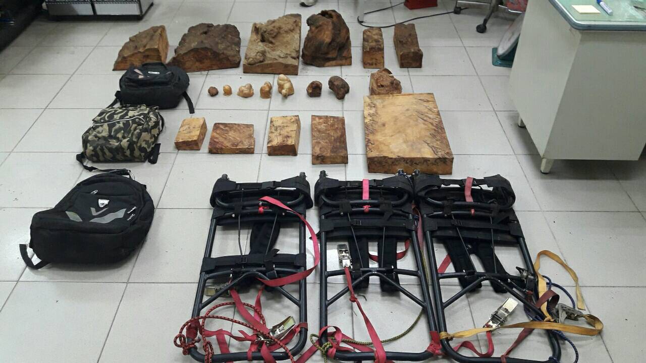 林務局南投林區管理處在9月8日傍晚陸續接獲2名熱心登山民眾通報發現有外籍移工於水漾森林登山路徑上疑似背負贓木步行下山,立即會同警政署保安警察第七總隊第六大隊啟動查緝任務,成功於9月9日凌晨在杉林溪地區逮捕外籍山老鼠3名及本地車手1名,涉嫌竊取珍貴臺灣扁柏樹瘤14顆、角材5塊,總重87.2公斤,市價逾60萬元,車上並搜出毒品吸食器具。 南投林區管理處表示,杉林溪地區巡山員於9月5日深夜發現有可疑車輛出入,開始會同保七第六大隊執行埋伏查緝勤務,直到9月8日傍晚有山友通報嘉義林管處「山老鼠雷達站」通訊群組表示有目擊外籍移工背負木頭行走於水漾森林登山路徑上,嘉義處經由橫向聯繫將資訊通報該處啟動區域聯防機制,同時亦有另名山友以保林專線通報相同之情資,經山友提供資訊研判莠民可能於9月9日凌晨下山以車輛接駁運輸贓木,由警方於杉林溪聯外道路設下攔檢點,成功緝獲4名嫌犯。 林務局南投林區管理處處長李政賢對於警方、護管同仁經由南投、嘉義區域聯防機制,精準研判情資成功緝獲不法,表示欣慰及嘉許,而本次山友即時通報盜伐資訊,李處長更是由衷表達感謝,亦將依規定發給檢舉獎金 。李處長指出,森林是國家的財產,而國有土地內之森林衍生的利益,屬國民共有共享,勿擅自盜伐林木破壞森林資源,且依森林法第50條、第52條規定,最高可判處10年半有期徒刑、併科贓額10-20倍罰金、犯罪工具一律沒收,呼籲民眾勿以身試法,如有盜伐訊息可電0800-000930(您您您救山林)提出檢舉,最高可獲得300萬元以下獎金。