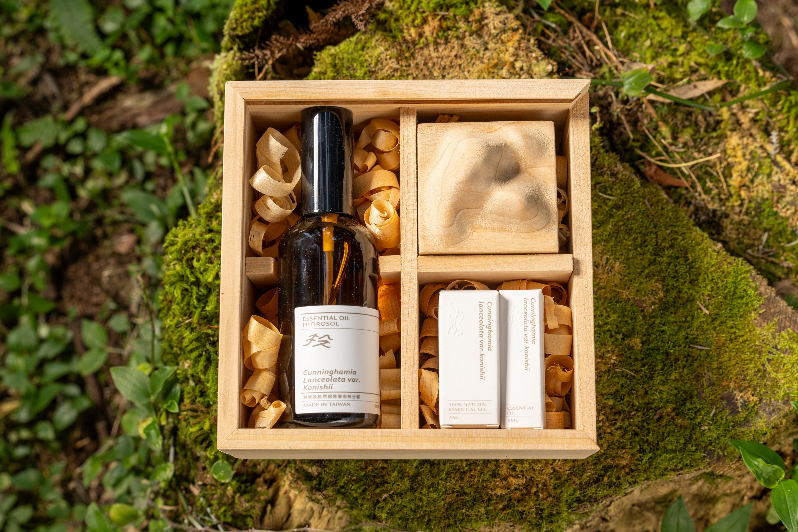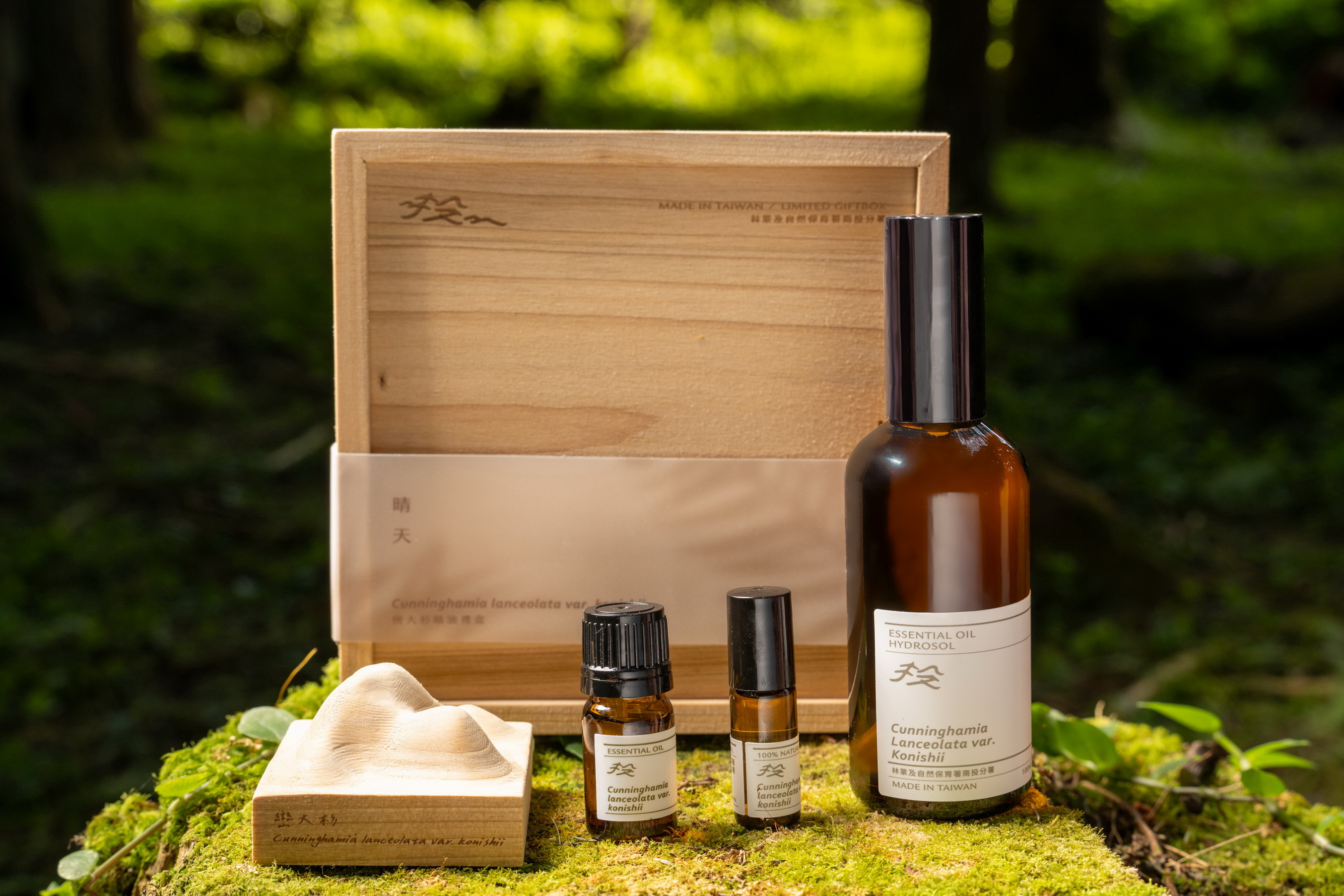 林業保育署南投分署與南投鹿谷在地青創品牌「森林邦」合作開發,首次推出限量的「巒大杉精油禮盒-晴天」,禮盒內含有巒大杉精油、調和精油、純露噴霧及擴香木,外盒更以永續循環為理念運用巒大杉邊角料製成,精油使用完畢後外盒可以繼續當成收納盒使用,讓喜歡臺灣森林味道的民眾在家就可以從視、嗅、及觸覺體驗來自於南投巒大事業區巒大杉森林之獨特香味魅力。 巒大杉精油禮盒原料皆來自南投縣信義鄉巒大事業區純淨的巒大杉森林,目前已正式對外販售,民眾可至奧萬大森林遊樂區森林小舖選購,或透過「森林邦」網站訂購,後續也會在市集展售。 巒大杉因木材芳香濃郁,故又稱「香杉」,最早為1907年最先在南投縣信義鄉「巒大山」所發現,故命名為巒大杉,也就是現在林業保育署南投分署所轄管巒大事業區範圍,是南投分署相當具代表性的貴重木之一,巒大杉精油經檢驗分析,發現含量較高成分為雪松醇(Cedrol),其氣味芬芳耐聞,讓森林香氛愛好者回味不已;香杉精油適合於晨間使用,有種熹光微微、綠樹薄霧,想像漫步林間,浸潤於自然與光的懷抱中,在香氣中甦醒,來開啟一天的活力。 南投分署李政賢分署長指出,為培育優質國產木材,南投分署會定期將人工林進行適度疏伐整理,疏伐下來的原木,70%會製成規格用材加以運用,其餘30%枝梢等剩餘的資材同樣不能浪費,可以萃取出精油及純露,並與在地原住民族人及青年合作開發產品,期望藉此提升在地部落、社區工作機會,同步達到木材全株利用,林業剩餘資材永續循環利用之目標,共創綠色經濟發展新契機。