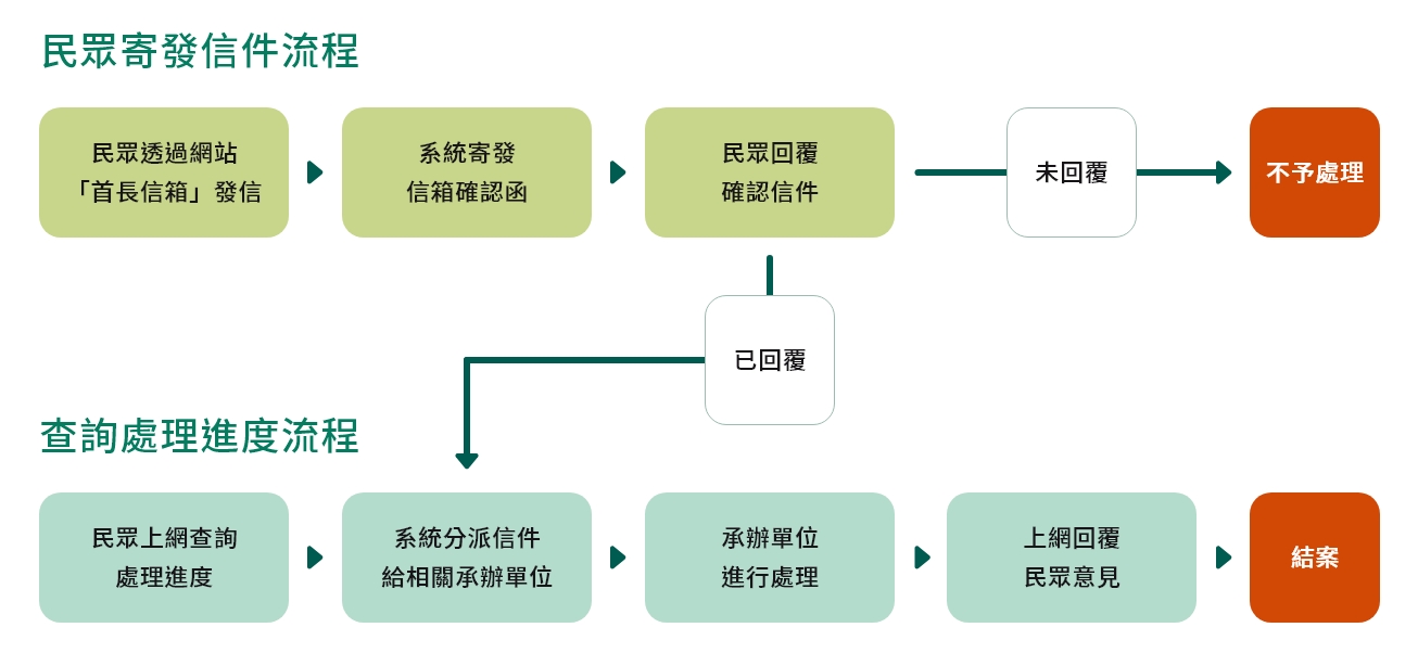 以上信件處理流程,民眾皆可上網查詢目前處理進度。